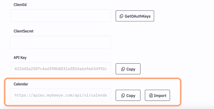 - In the Link to the calendar box, paste the webcal link you copied from Beeye.