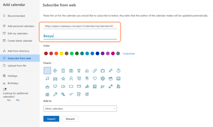 Add the Beeye Calendar to Outlook Web (Outlook Web / Office 365)
