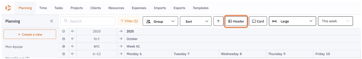 The Planning page's Header customization feature allows you to personalize the information displayed in the left column of your planning view. This powerful feature helps you make informed scheduling decisions by displaying the most relevant resource information and key performance indicators at a glance.