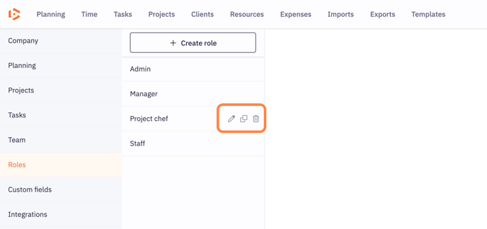 - Locate the role you want to duplicate. Hover over it, a Clone button appears.