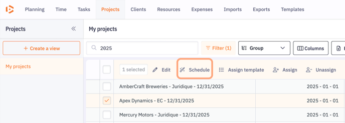Access Prerequisites: To access the automated scheduling feature, you must have Schedule project automatically access right. Once it is granted, the Schedule and its magic wand button becomes visible in the user interface.