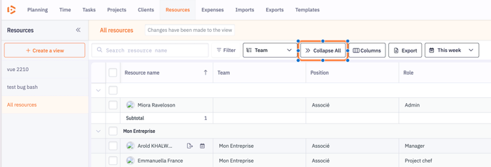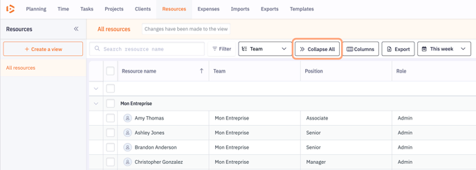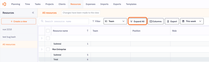 Tip: This button toggles between Collapse and Expand. For quick access, we recommend pinning it between the Group and Columns buttons.