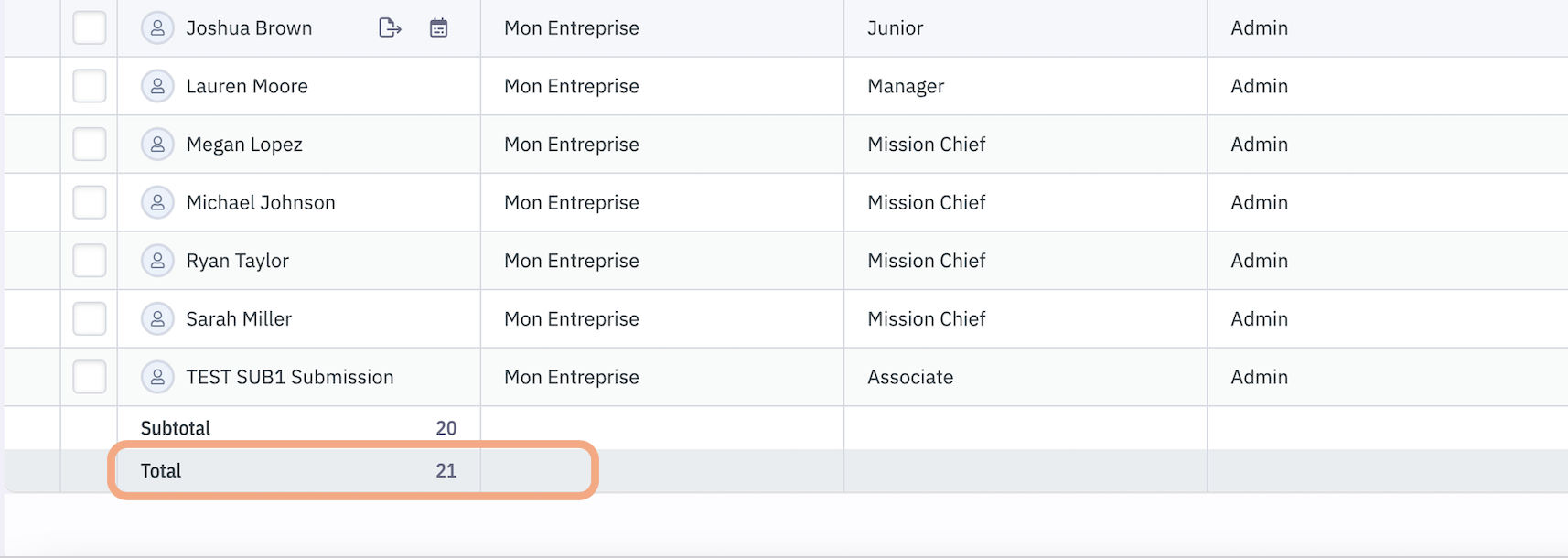 The grand total allows you to see the sum of each column for all the data displayed in your DataGrid.