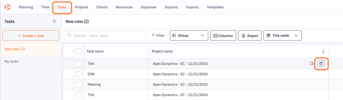 - From the Tasks Page : you can also access the project schedule by clicking the Planning button next to each project.