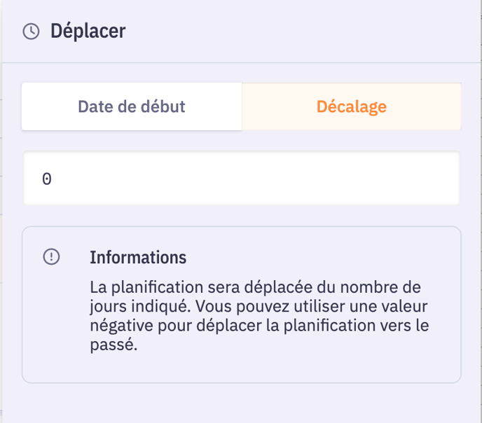 Pour déplacer, précisez la nouvelle date de début ou le nombre de jours à décaler.