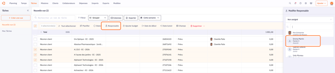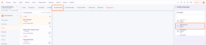 - Vous pouvez changer le responsable de chaque tâche en utilisant le bouton responsable.