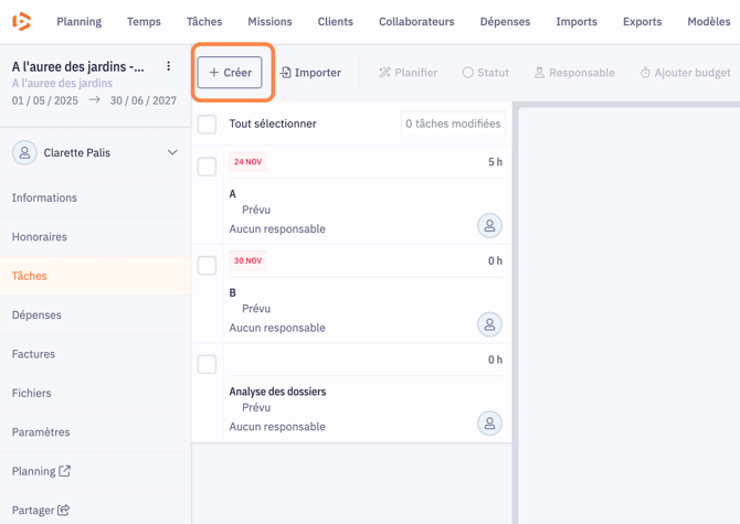 Cette méthode permet d’importer une ou plusieurs tâches issues d’un modèle directement dans une mission.