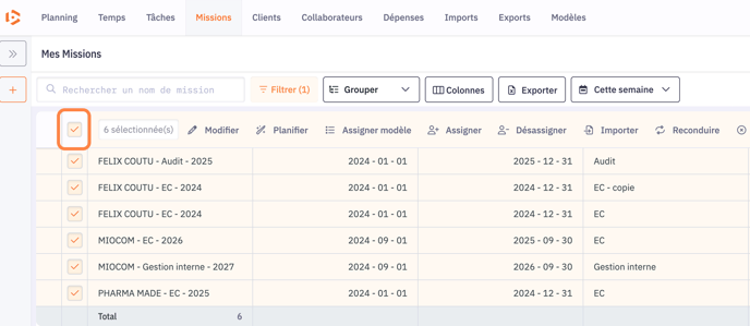 Cochez la case Sélectionner tout en haut à gauche du tableau pour sélectionner toutes les lignes de la page en cours.