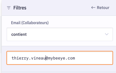 Utilisez votre adresse e-mail pour spécifier votre compte et garantir que le filtrage affiche les tâches qui vous sont assignées.