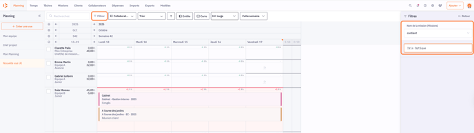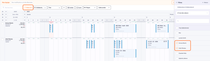 - Mon planning: Filtrez le planning pour afficher uniquement vos propres tâches, afin de vous concentrer sur votre charge de travail personnelle.