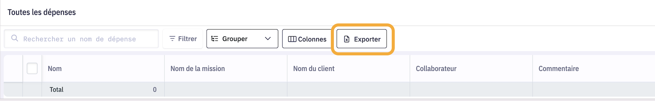 - Accédez à la section "Dépenses" sur la page "Exports".