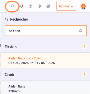 1- Recherche Rapide : Utilisez la fonction de recherche rapide située en haut à droite de l'interface de Beeye. Tapez le nom de la mission et sélectionnez-la dans les résultats. Un raccourci vous permettra d'accéder directement au planning de la mission concernée, offrant un moyen rapide et intuitif de visualiser son calendrier.