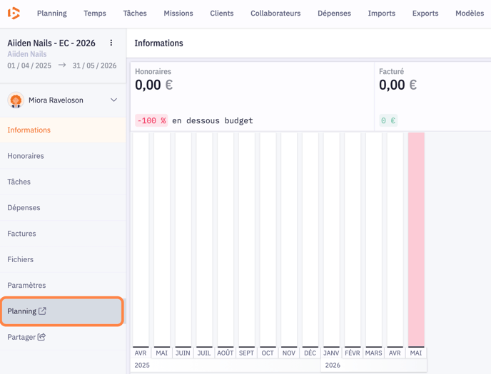 Un raccourci sur cette fiche vous permet d’ouvrir directement le planning de la mission.