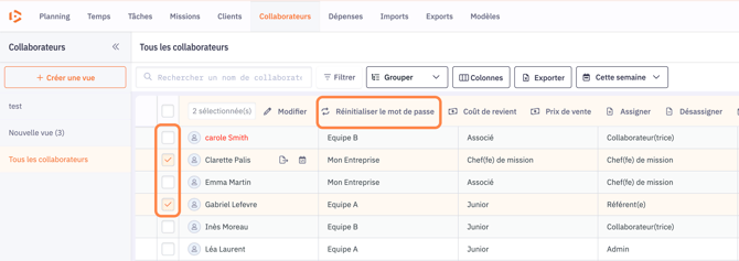 - Sélectionnez le ou les collaborateurs concernés.