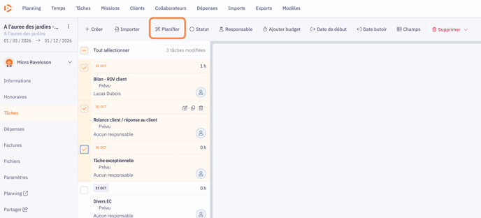 Bon à savoir : si aucune tâche n'est sélectionnée et que vous lancez la planification automatisée, celle-ci se déclenchera pour la mission dans son ensemble.