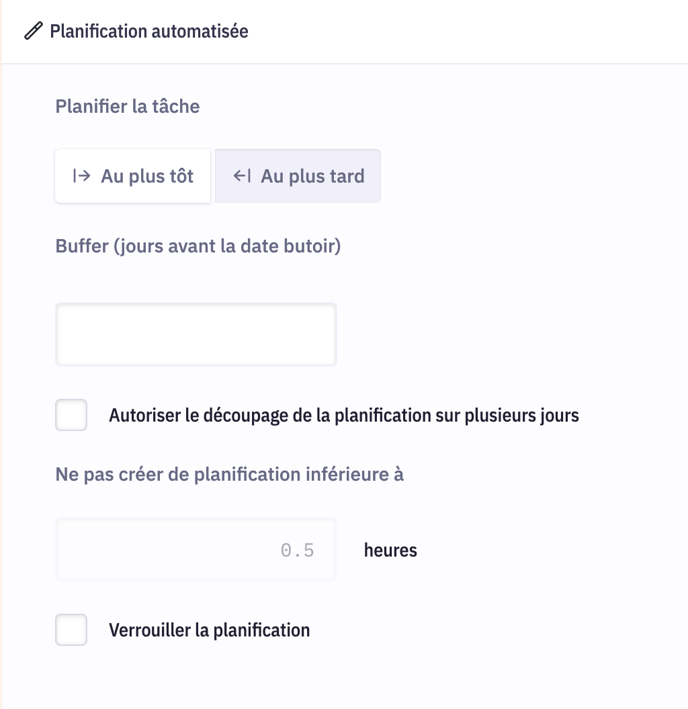 La planification automatique permet de planifier les tâches dont la date butoir est dépassée.