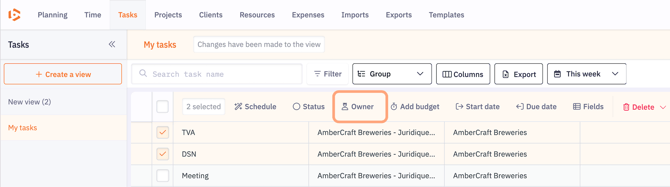 Change the owner for each task using the owner button.