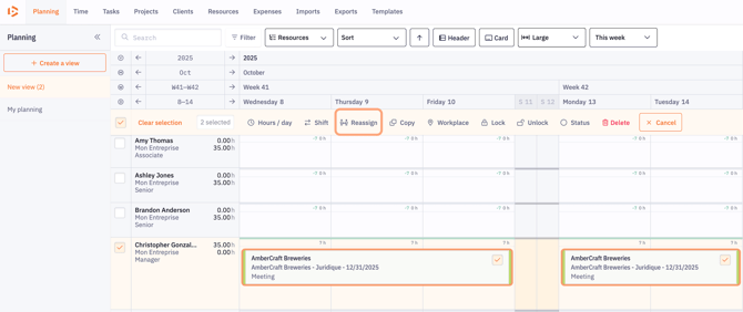 Click the Reassign button and choose the resource you want to assign to the card(s).