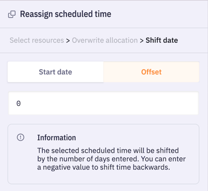- You will then have fields allowing you to define the days on which you want to shift the cards in the schedule of the newly assigned resource.