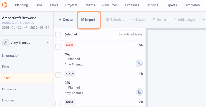 - In the Tasks section, import them directly from the chosen template.