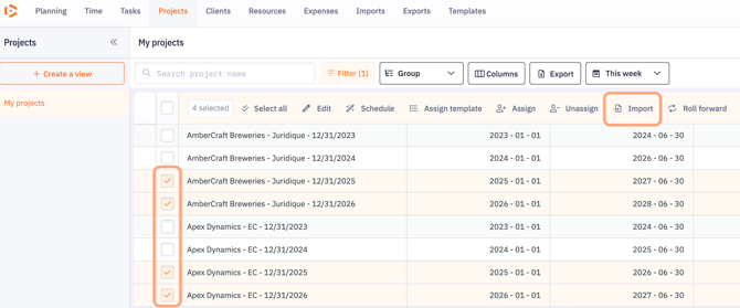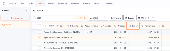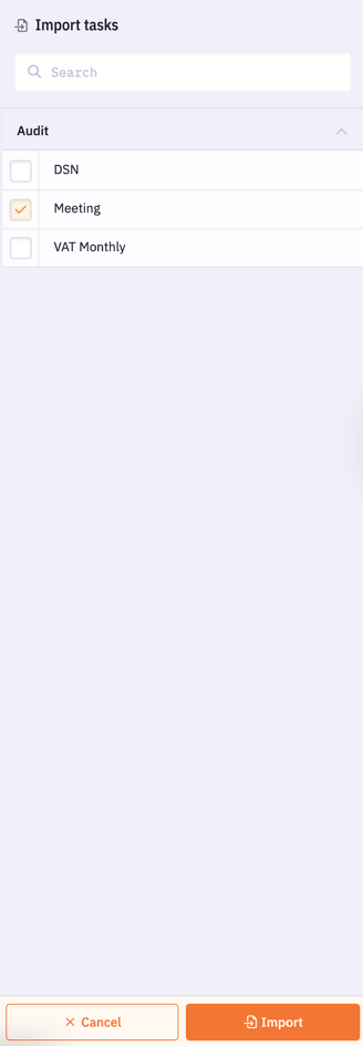 You can import one or more tasks from a template across multiple projects. This saves time and ensures consistency in how tasks are added.