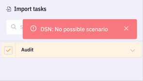 During import, you may receive the message "No possible scenario ", which prevents the task(s) from being imported.