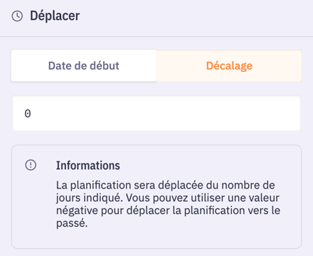 Sinon, définissez un décalage en jours : indiquez le nombre de jours pour déplacer la planification.