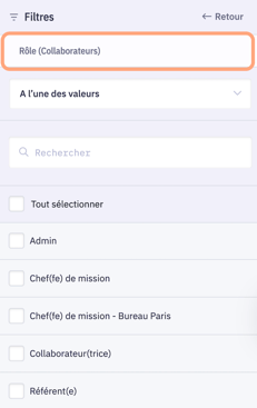 • Utilisez le filtre « Rôle » pour afficher uniquement les collaborateurs possédant ce rôle.