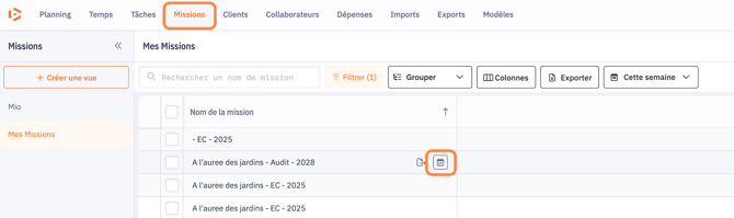 Un raccourci sur cette fiche vous permet d’ouvrir directement le planning de la mission.